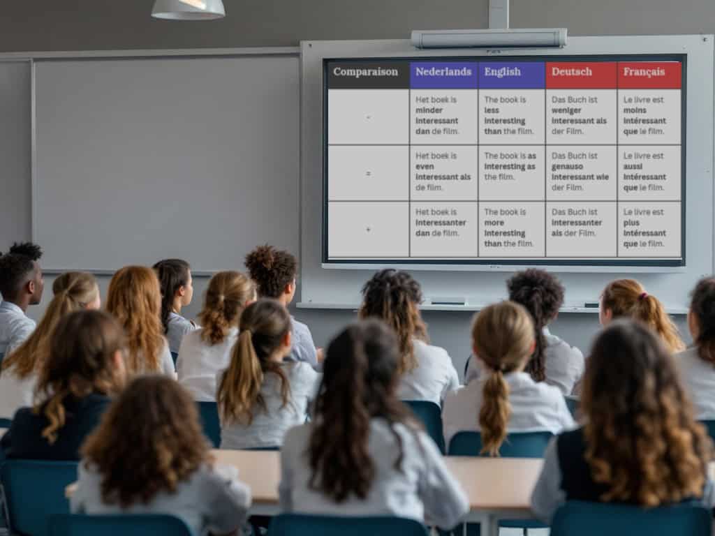 In de nieuwe examenprogramma’s moderne vreemde talen is veel aandacht voor taalbewustzijn. In deze workshop bespreken we recent onderzoek van o.a. Gijs Leenders (Hogeschool Rotterdam) dat laat zien hoe docenten Nederlands en moderne vreemde talen gezamenlijk kunnen optrekken in een grammaticaleerlijn die gebruik maakt van talenvergelijking. Daarna laten we, aan de hand van een aantal concrete voorbeelden uit lessen Frans, zien hoe leerlingen zelf grammaticaregels kunnen ontdekken door verschillende talen met elkaar te vergelijken. Hoe werken de trappen van vergelijking bijvoorbeeld in verschillende talen? Door de regel zelf te ontdekken, breder inzicht te krijgen in hoe taalsystemen werken en dit vervolgens meteen toe te passen in een communicatieve context, maken leerlingen zich de Franse grammatica beter en blijvend eigen. Probeer het zelf uit!